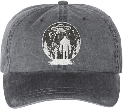 UFO Alien Big Foot Hats Embroidered Baseball Cap | Funny Graphic Vintage Washed Cotton Hat For Men & Women