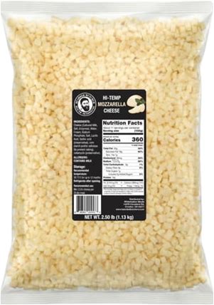 The Bearded Butchers High-Temp Mozzarella Cheese 2.5 Lb Bag Diced Cubes, Non-Melting Cheese For Meat