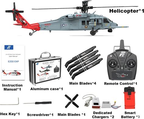Eachine Eachine E200 EXP UH-60 SH-60 MH-60 2.4G 6CH 6-Axis Gyro Optical Flow Localization Dual Brushless Motor 1:47 Scale Flybarless RC Helicopter RTF