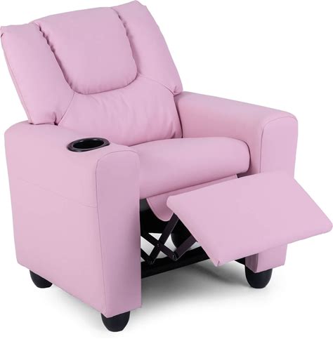 Costway Kids Recliner Chair With Cup Holder & Side Pocket Adjustable - Pink