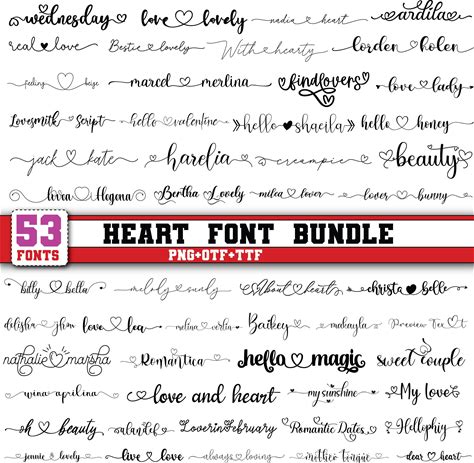 Heart Fonts Bundle: Script, Cursive Designs (SVG, TTF, OTF) - Etsy