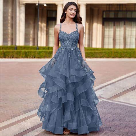 Stacees 2026 Ball Gown Prom Dress Dusty Blue Layered Ruffles Skirt