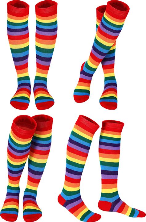 SATINIOR 4 Pair Rainbow Knee High Socks Striped Clown Long Novelty Colorful Funny Stripe Stockings Tube Socks Costume Accessories For Women Girls