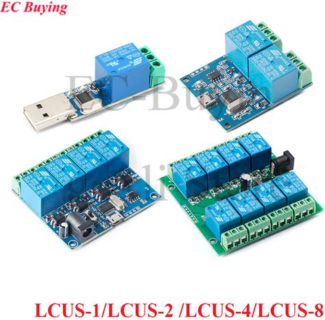 DC 5V 2CH 4CH 8 Channel Relay Module Micro USB Board With Indicator PC Upper Computer ICSE014A