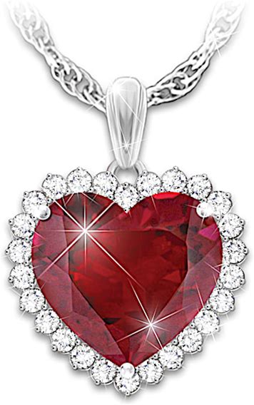 With All My Heart Romantic Sterling Silver Pendant Necklace Featuring A Heart-Shaped Ruby Center Stone Surrounded By A Halo Of Over 24 White Topaz By The Bradford Exchange