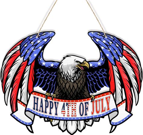 Ushinemi American Eagle 4th Of July Decorations, Wooden Happy 4th Of July Hanging Wreaths Signs Independence Day Door Decorations, Red White And Blue
