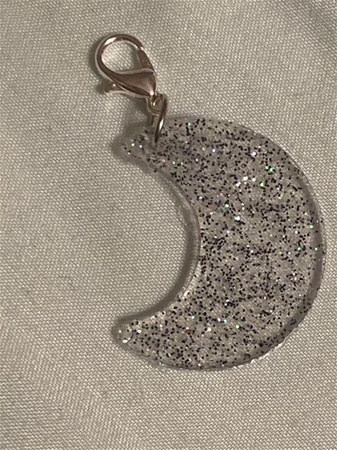 Transparent UV Resin Crescent Moon Pendant With Black & Silver Glitter