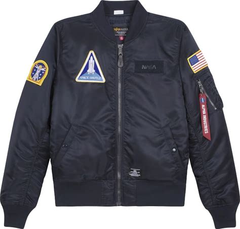 Alpha Industries NASA MA-1 Flight Jacket Gen II, Water-Resistant Bomber Jacket Space-Themed Patches, Utility Sleeve Pocket