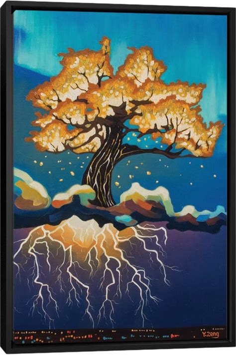 Lightning Tree Fantasy Oil Painting - Framed Fine Art Print By Yue Zeng - 24"X16" - Icanvas