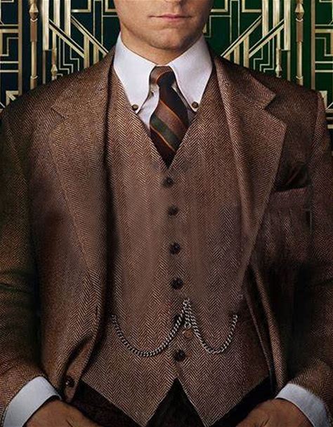 Men's Vested Great Gatsby Tweed Herringbone Tobey Maguire Suit Light Brown 38 Short Jacket+32 Waist Adjustable 28To34)(Height: 5 4 To5 7 )(Neck 15-