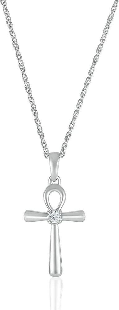 Gold Diamond Cut Egyptian Ankh Cross Textured Pendant Necklace White Gold 10K Pendant With 18" Chain
