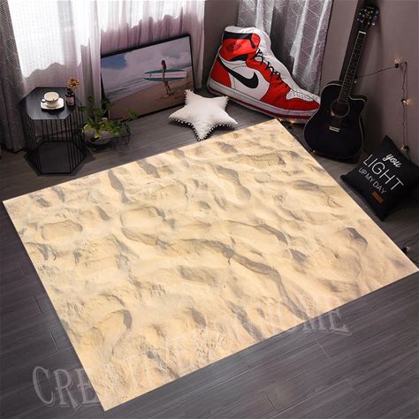 Beach Sand Area Rug, 3D Print, Non-Slip Cotton Base