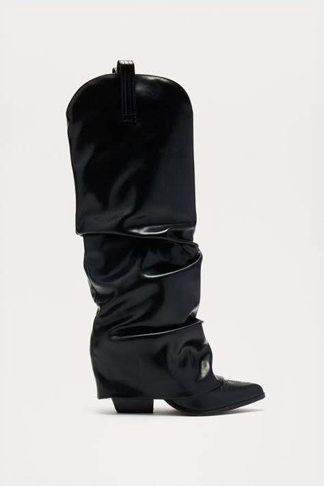 Pop Womens Chambers Flat Heel Slouch Boots | Black | Regular 8 1/2 | Boots Slouch Boots