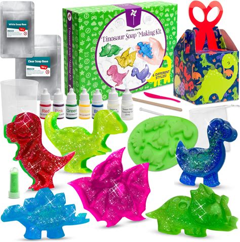 Pinwheel Crafts DIY Soap Making Kit For Kids Ages 5 6 7 8-12+ With Molds, Scents, Dye, Glitter, Foaming Net - Dinosaur Soap Making Kits For Adults