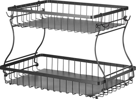 Tribesigns Wood Fruit And Vegetable Basket Stand Rack For Kitchen, Office, Store, Supremarket, Pantry Shelf Unit For Snacks, 4-Tier Wooden Utility Storage Shelves Set Of 2 (White)(Black)
