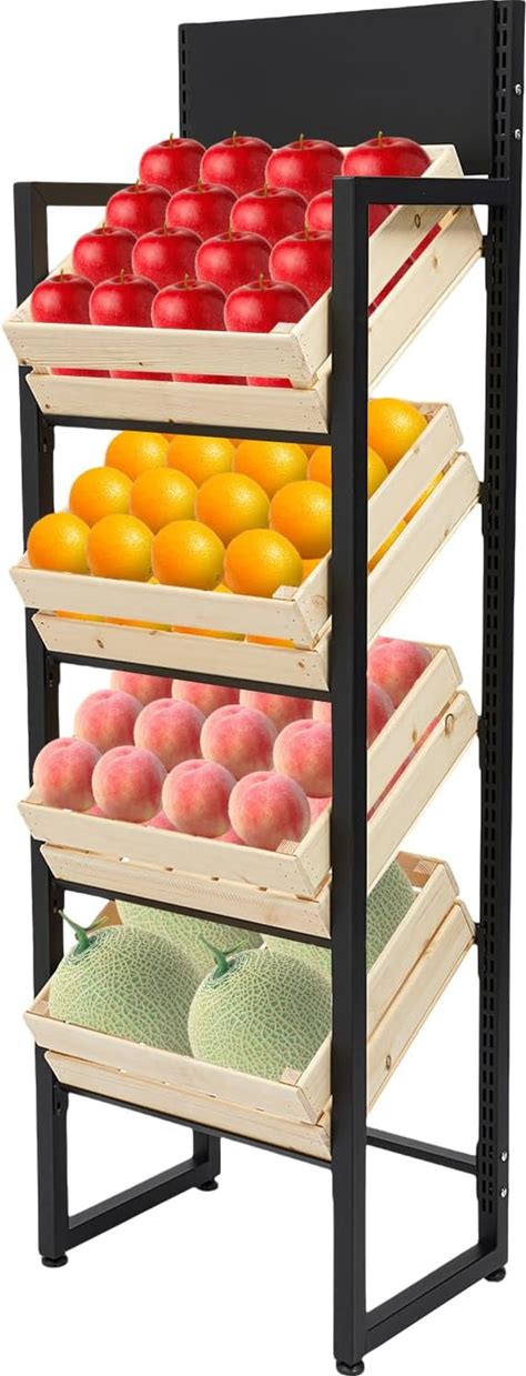 Market Retail Display Rack, Wood Fruit And Vegetable Storage Rack, Fruit Basket Stand, 4 Tier Supermarket Retail Display Rack, For Home, Vegetable And Fruit Stores, 20.47 13.78 62.99 in