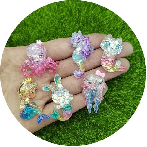 Resin Kawaii Colorful Rabbit Unicorn Octopus Cat Mermaid Flatback Rhinestone Cartoon Figurine Scrapbook DIY Crafts Slime Filling Charm