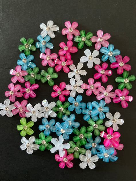 Kawaii Mini Mini Flower With Rhinestone Deco Diy Craft Resin Flatback Random Mix 50Pcs