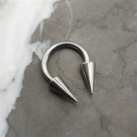 Titanium Large Spike Septum Ring, Horseshoe Hoop Ring In 14G Or 16G - 4x8mm Spikes
