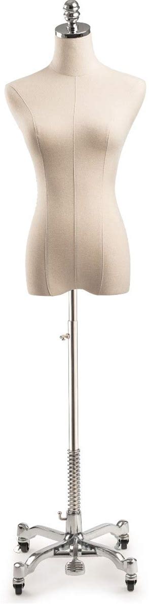 Female Display Dress Form Mannequin In Natural Canvas On Metal Rolling Base By TSC-Medium-Chrome