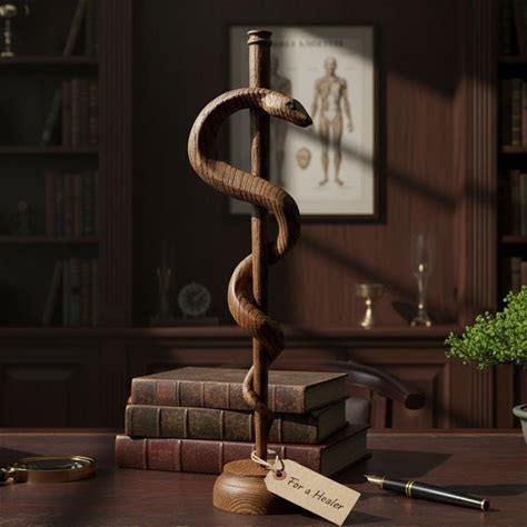 Wood Rod Of Asclepius 12" Symbol Statue Wooden Statue Of Medical Symbol Gift For Doctor Or Graduation Gift For Medical Student Snake Statue