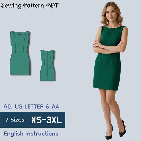 Princess Seam Dress Sewing Pattern PDF | Fitted Mini Dress | Sleeveless Elegant Summer Dress XS-3XL | A0 A4 Letter | Instant Download