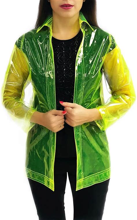 Party Transparent PVC Long Sleeve Female Jackets Punk Mens Turn-Down Neck Vinyl Plastic Coats Exotic