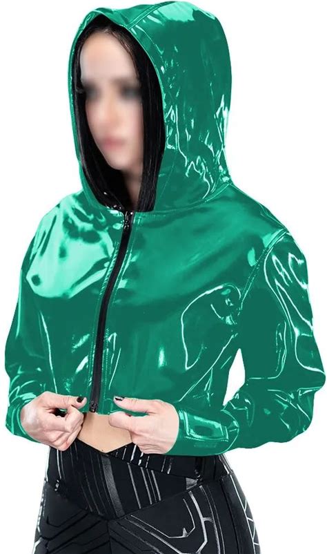 Shiny PVC Suit Jacket For Women, Long Sleeve, Turn Down Collar, Faux Leather Coat, Sexy High Waisted