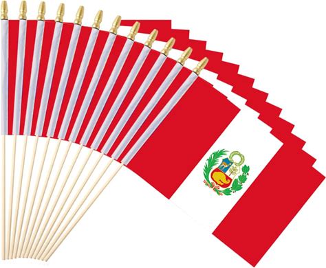 Ckexin 25Pack Small Peru Flag Handheld Mini Peruvian Flags On Stick 5X8 Inch