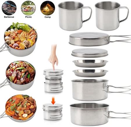 Camping Cookware Set 304 Stainless Steel 8-Piece Pots Pans Open Fire Cooking Kit | Frying Pan Steamer With Travel Tote Bag | Compact For Outdoors Indoors Kitchen Campfire Hiking RV(NON STICK COATING PAN')