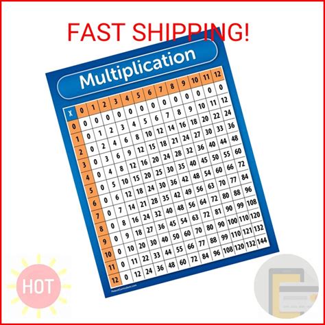 Colarr Multiplication Chart Posters For Classroom Multiple Math Posters From 1 To 12 Counting Numbers Times Educational Multiplication Table Chart For