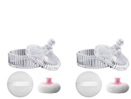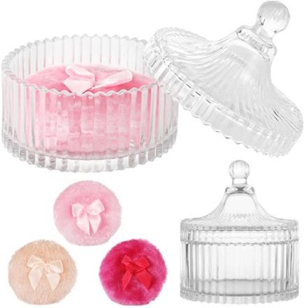 2Pcs Extra Large Body Powder Puff Luxury 6" Glass Jar Dusting Powder Container With Puff For Women Bath Powder Puffs Perfect For Talcum Or Loose Powder (White)(Beige 5.2" Puff)