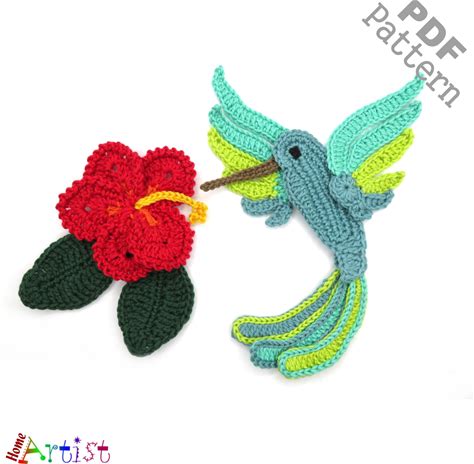 Crochet Pattern Hummingbird + Flower Applique Patch US Version Instant PDF Download