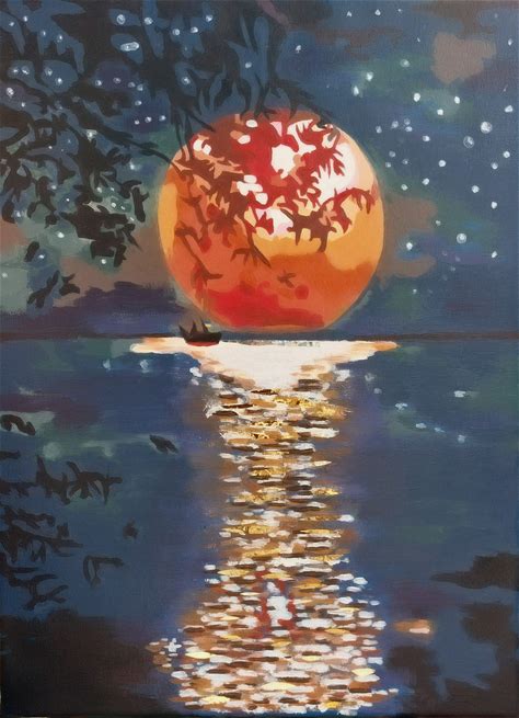 Top suggestions for Moon On Water Painting |