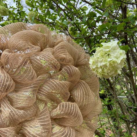 How to make a beach wreath poof with ruffles Jute mesh and fabric