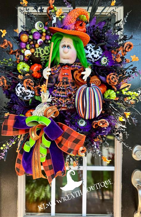 Witch Wreath Halloween Door Hanger Front Door Wreath Fall Decor